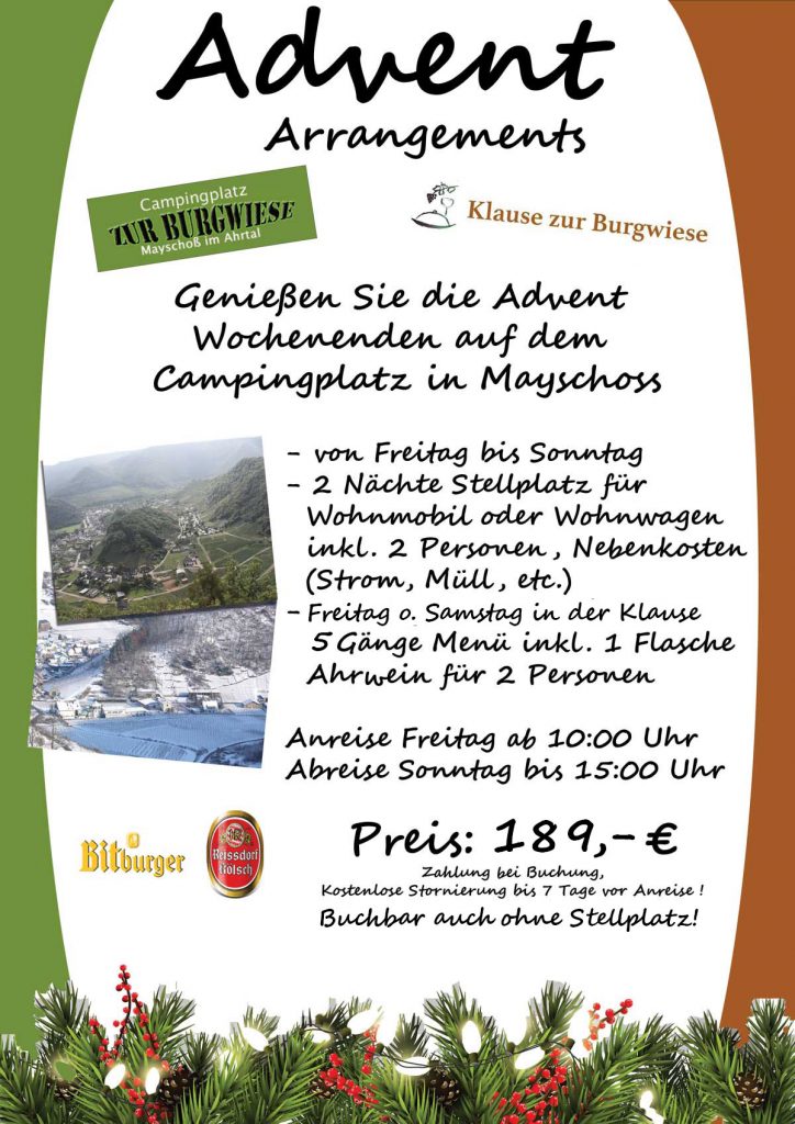 WICHTIGE INFO: In diesem Jahr erfolgt die Buchung des Advent-Arrangements ausschließlich über die Website der Klause zur Burgwiese. Hier geht’s direkt...